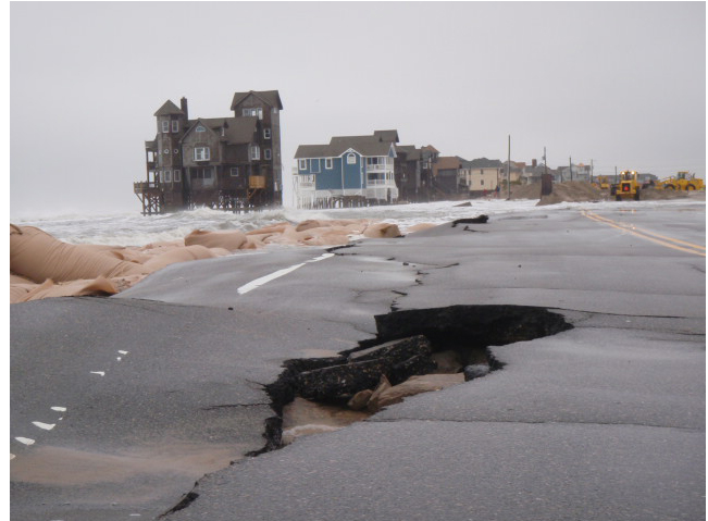 Highway 12 in Rodanthe, NC after Hurricane Irene. Credit: US Fish and Wildlife (2011).
