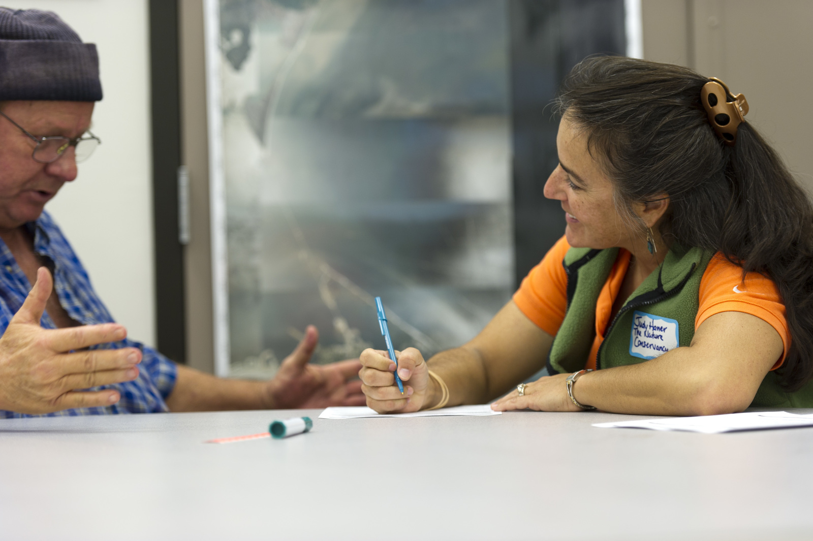 Judy Haner, Marine Program Director at TNC in Alabama, speaks with a local fisherman. Photo credit: Andrew Kornylak