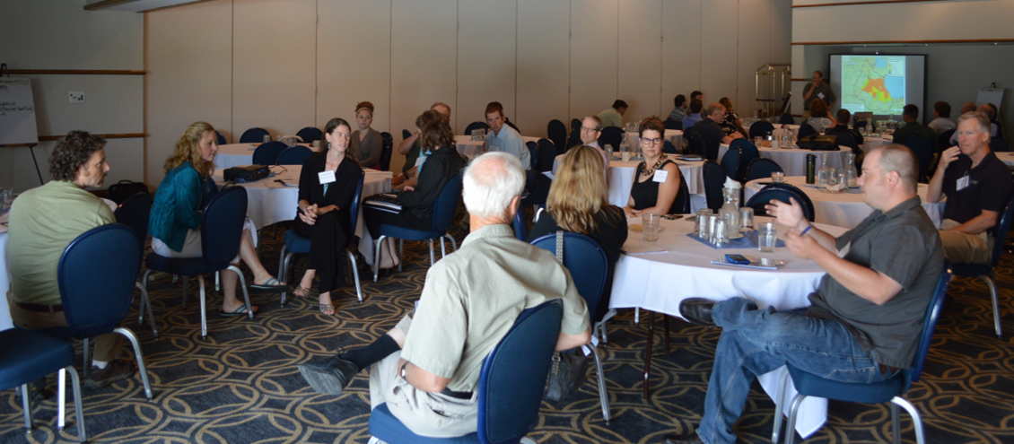 Stakeholder workshop to review and provide feedback on the preliminary results of the Western Lake Erie Coastal Conservation Vision. The Vision integrates ecological and human well-being values to identify locations for projects that benefit both nature and people. Maumee Bay State Park Lodge and Conference Center, June 25, 2014. Photo Credit: Katie Kahl/The Nature Conservancy