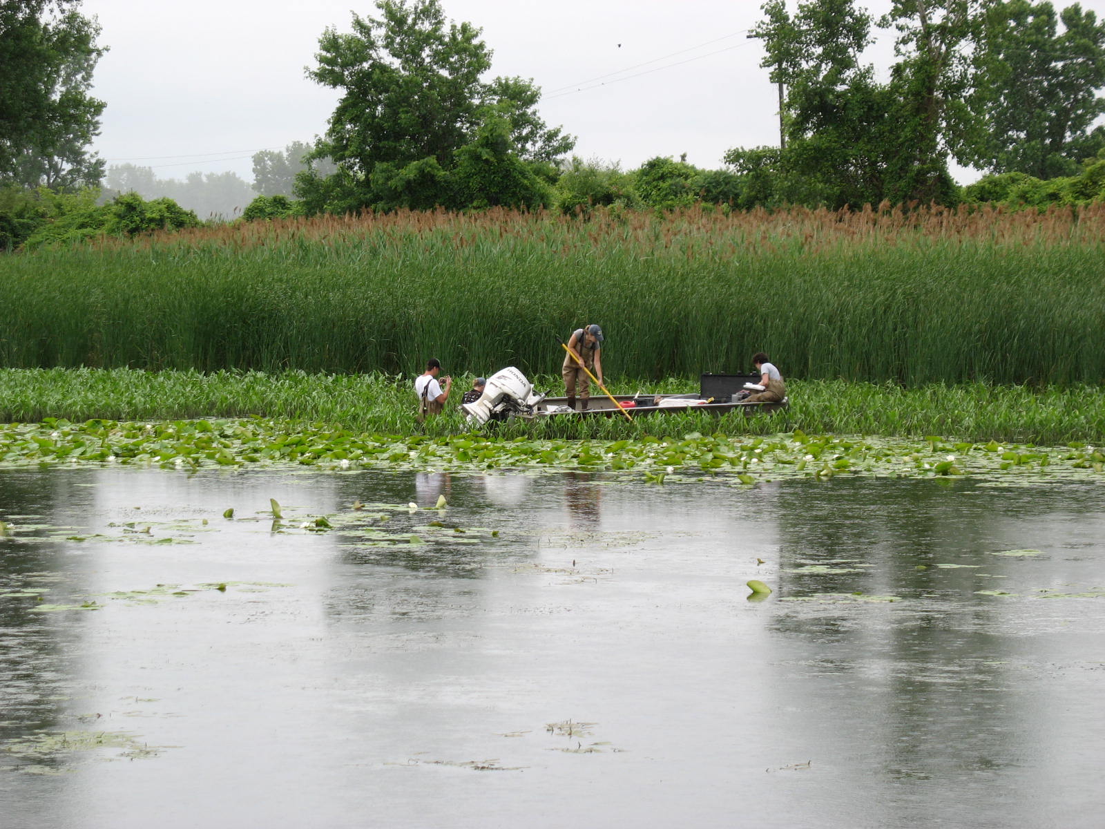 Wetland monitoring crew, Erie Marsh Preserve, Michigan. Long-term monitoring of plants, animals, water quality, and other variables is an essential part of wetland restoration and management. Monitoring also allows tracking of wetland health and quality across both space and time. Photo Credit: Chris May/The Nature Conservancy
